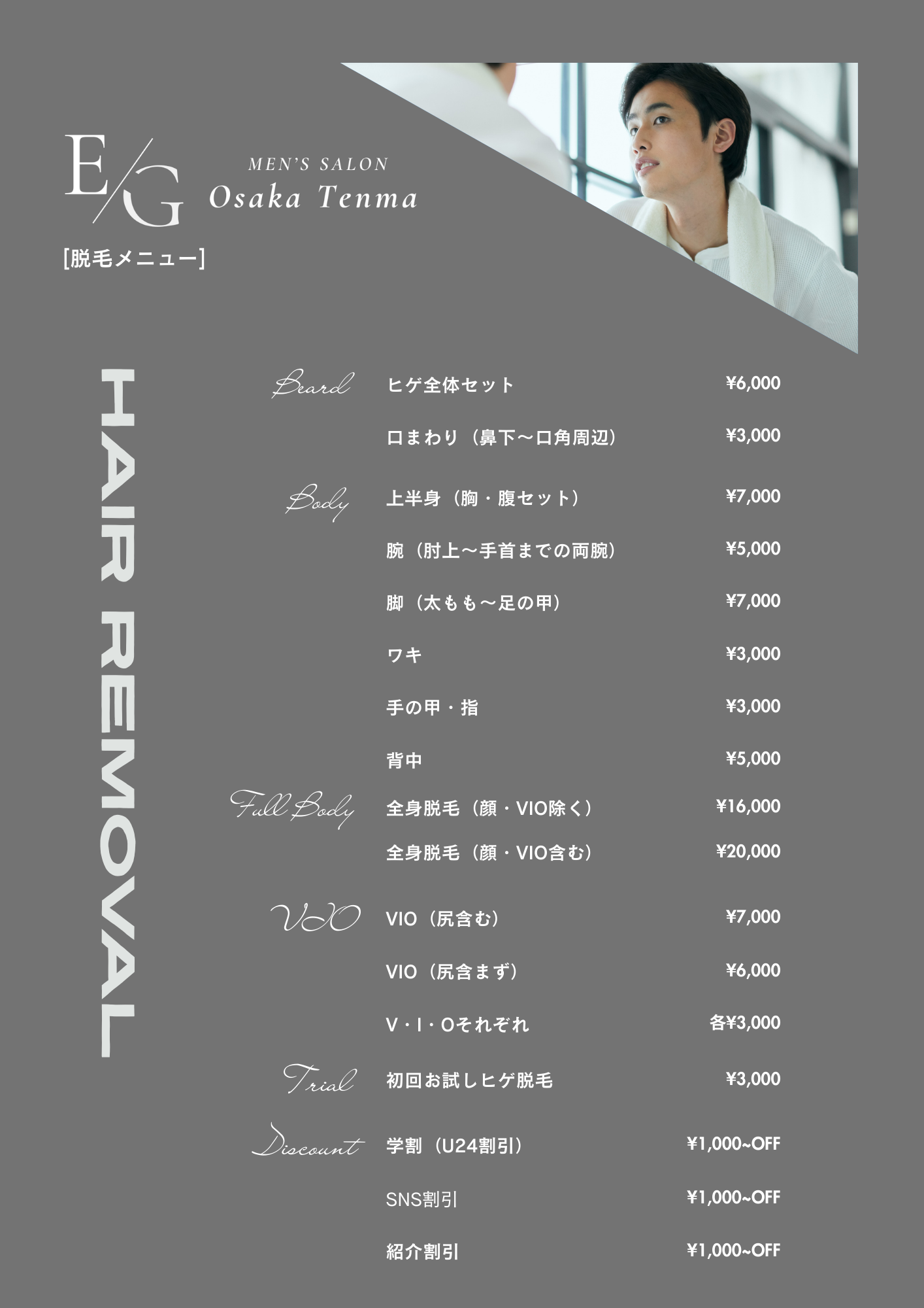 天満駅・天六駅が最寄りのメンズ専門脱毛・美容サロンはEG